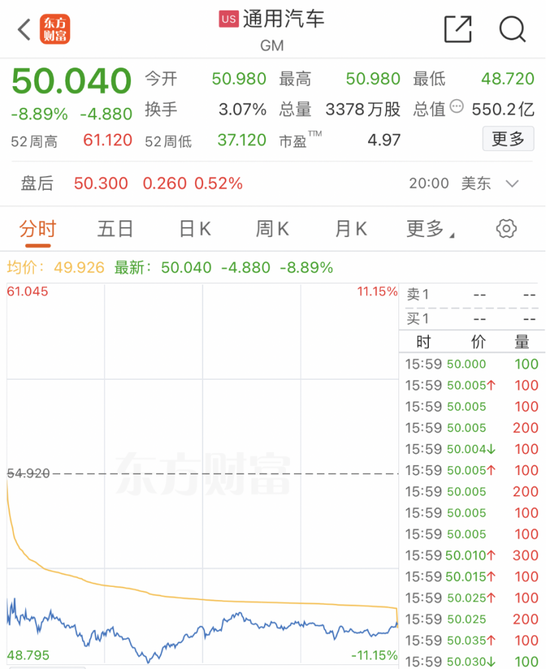 好意思东时辰1月28日,好意思股盘中,通用汽车股价一度暴跌超11%,端正收盘,跌幅仍达8.89%,最新总市值缩水至550.24亿好意思元。