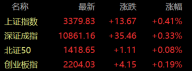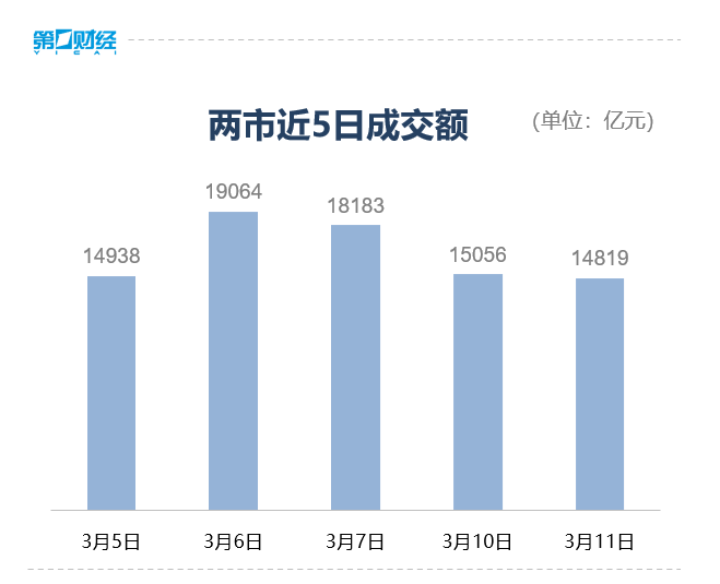 3月11日,A股三大指数集体高涨。收场收盘,沪指涨0.41%,深成指涨0.33%,创业板指涨0.19%。沪深两市全天成交额1.48万亿元。