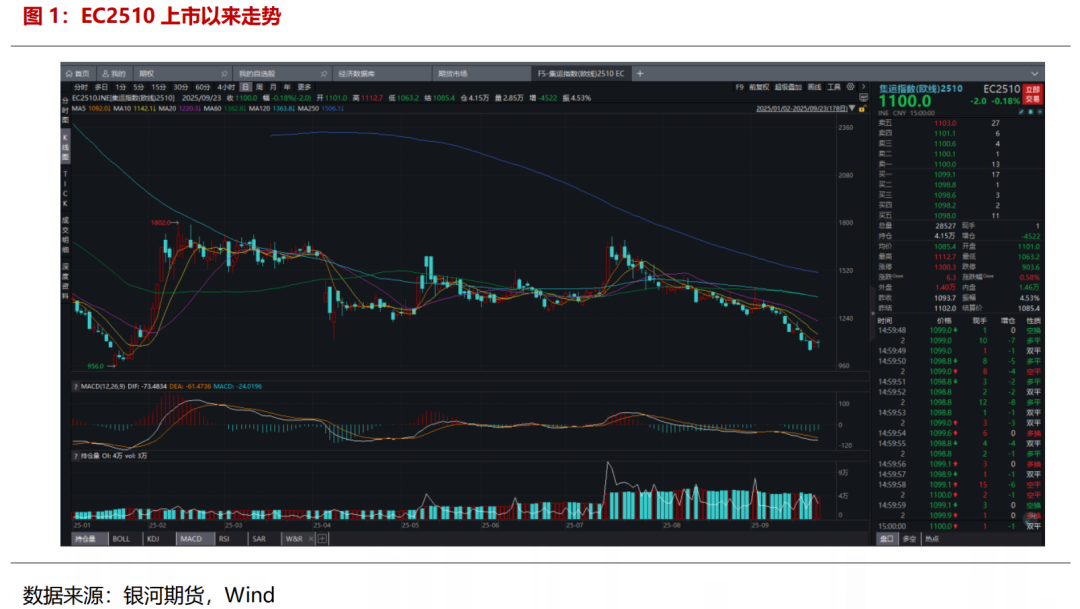 9月集运市集步入传统货量淡季,船司揽货压力增大,船舶装载率下行的布景下,现货运价沿途下落带动EC2510抑制试探下方低点,后跟着新一轮挺价季的开启止跌反弹。9月市集捏续博弈淡季低点,EC盘面奴隶现货走势,合座延续下行。跟着现货报价来到上半年低点以下时,跌幅超出市集预期,悲不雅心思心事下,10合约估值延续下修,月内EC2510月内跌破1050点。但后续跟着集运长约季的驾临,宣涨预期下带动12合约朝上建筑贴水,且部分船司调涨10月现货报价撑捏盘面上行,带动10合约估值有望上修,柔柔后续宣涨的落地情况。