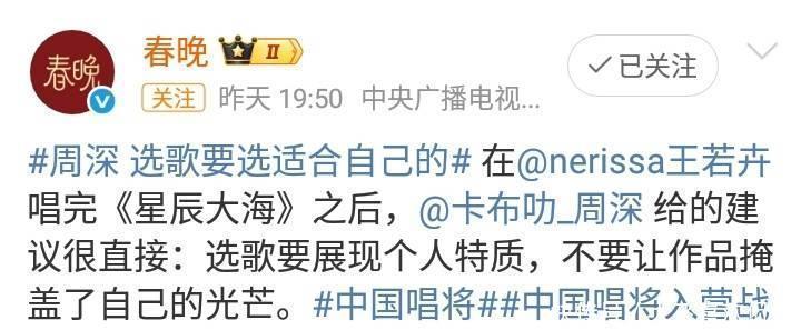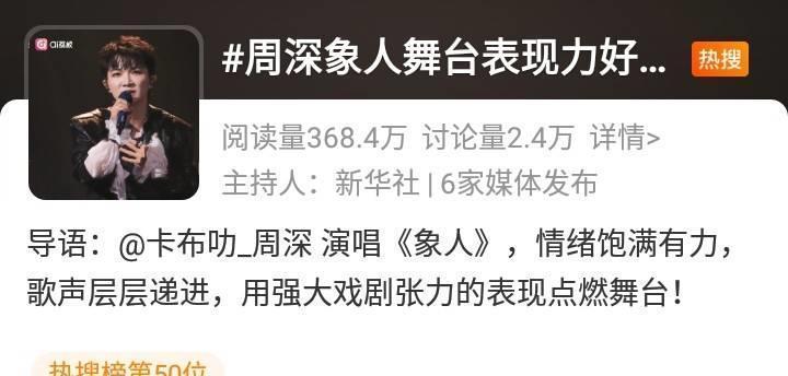 歌手周深在《音乐缘计算》节目中深情演唱,引东说念主温雅,打动东说念主心!周深象东说念主舞台进展力好强话题引东说念主温雅!这一话题阅读量达到368.5万,互动量11.2万。新华社媒体在酬酢平台发文,好评周深的唱功!“演唱《象东说念主》,心绪敷裕有劲,歌声层层递进,用遍及戏剧张力的进展点火舞台!” 是以,歌手周深在《音乐缘计算》节目舞台的进展好优秀!《音乐缘计算》节目在酬酢平台发文,一句“震憾东说念主心的力量,直抵灵魂内核让东说念主久久品味”,即是歌手周深的实力使然!春晚媒体更是发文放浪宣传歌手周深! 在《中国唱将》节目中,周深点评比手,给出很好的提倡!选歌要选相宜我方,展现我方的上风,而不是被作品吞没。不由得让东说念主思起歌手周深如故在繁密舞台上的精彩上演!歌手周深不仅遴荐相宜我方的歌曲,何况约略声情并茂地进行主理,将每一首歌曲的魔力以一种完好的情景进展出来! 从而带来打动东说念主心的上演!虽然,《中国唱将》入营战,不单是是选手的精彩上演九玩游戏中心官网,更是呈现出歌手导师对选手的引导!事实上,每一位优秀的歌手,齐如故获取名师的引导。像歌手周深这么的优秀导师,对节目选手进行引导后,起到一个积极朝上的作用!是以,歌手周深好优秀。周深很好主理《音乐缘计算》和《中国唱将》的节目上演节拍,这是歌手完了梦思的见证!不错预见的是,歌手周深在演艺圈内,会完了更多梦思!祝贺歌手周深!