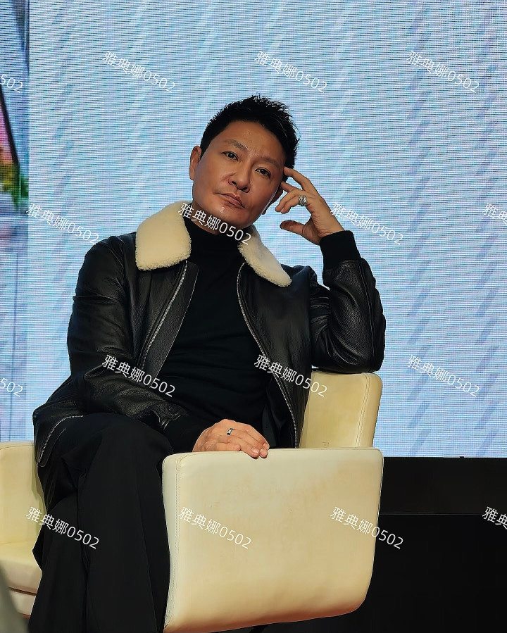 但今天在举止现场见到他本东说念主,四十九岁的他衣着毛领夹克和白色板鞋,固然打扮的很前锋很年青,但苹果肌较着很高,说话的技巧脸上的色调实在不动很是不当然。