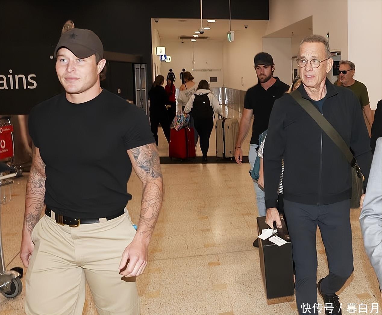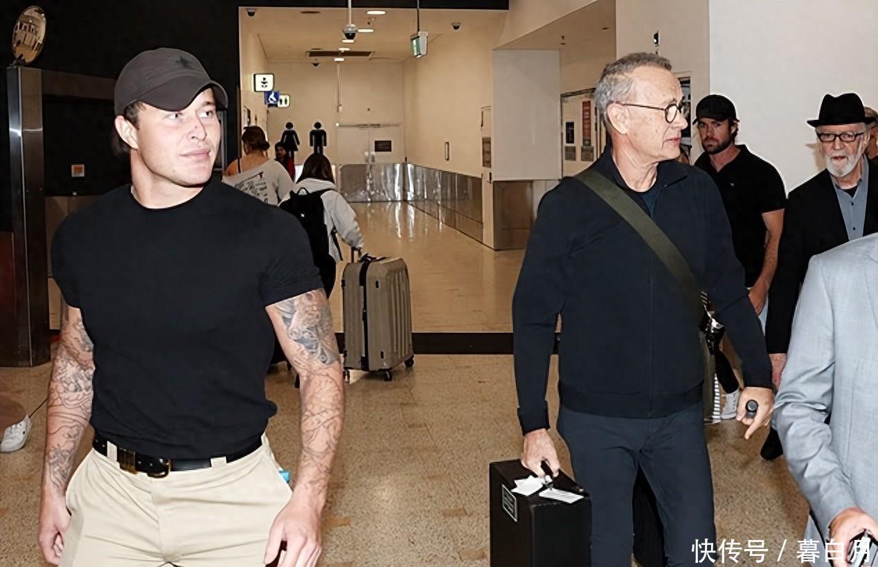 现年 69 岁的汤姆·汉克斯此行来到澳大利亚,是为了拍摄其 2020 年二战题材电影《灰猎犬号》的续集。今日,他在抵达机场时被别称躯壳广漠、肌肉褂讪、手臂布满纹身的安保东说念主员全程护送。这名年青保镖身穿修身玄色 T 恤,褂讪的手臂线条特殊详确,在东说念主群中十分吸睛,也被不少围不雅者嘲谑“存在感不输主角”。
