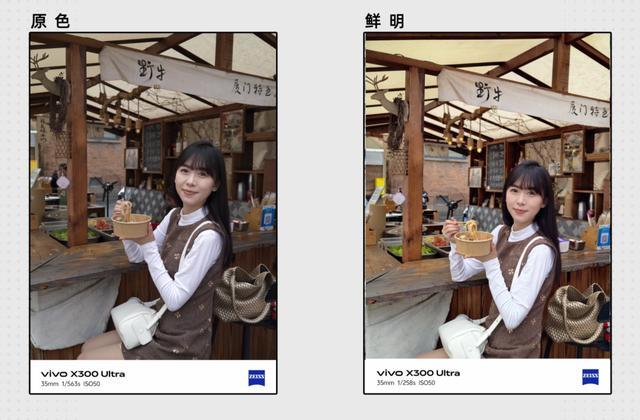 而在 X300 Ultra 这一代,它不光上了颗多光谱原色摄像头,还整了套我方的颜色科学,在相机里整了个「原色」模式,说是可以让手机拍的相片,多小数 “ 相机味 ”。