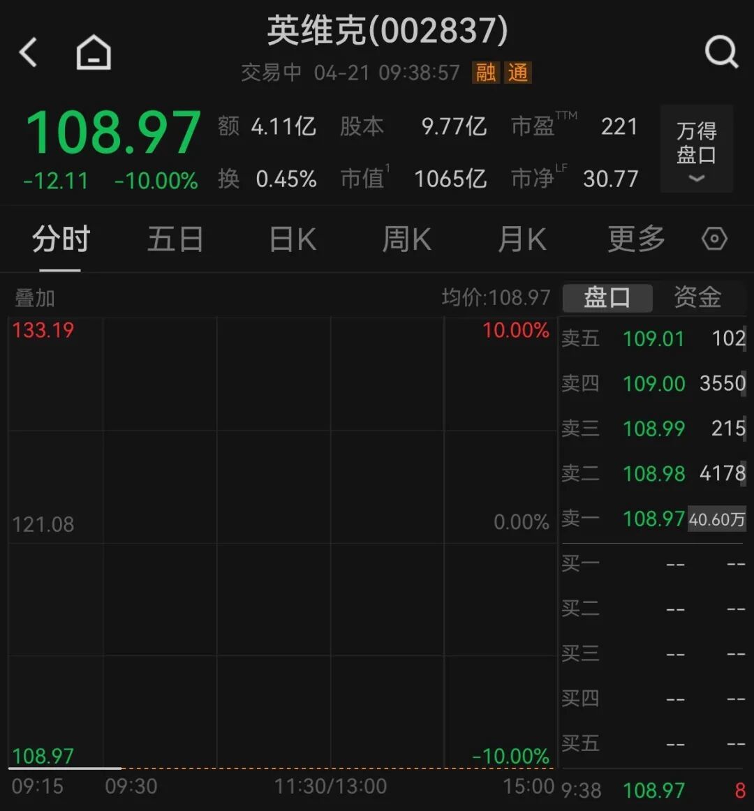 4月21日早盘,液冷就业器意见大面积低开九游会欧洲杯,英维克一字跌停,报108.97元/股,成交额超4亿元;音书面上,英维克昨日晚间裸露一季报,公司2026年一季度归母净利润865.76万元,同比着落81.97%。